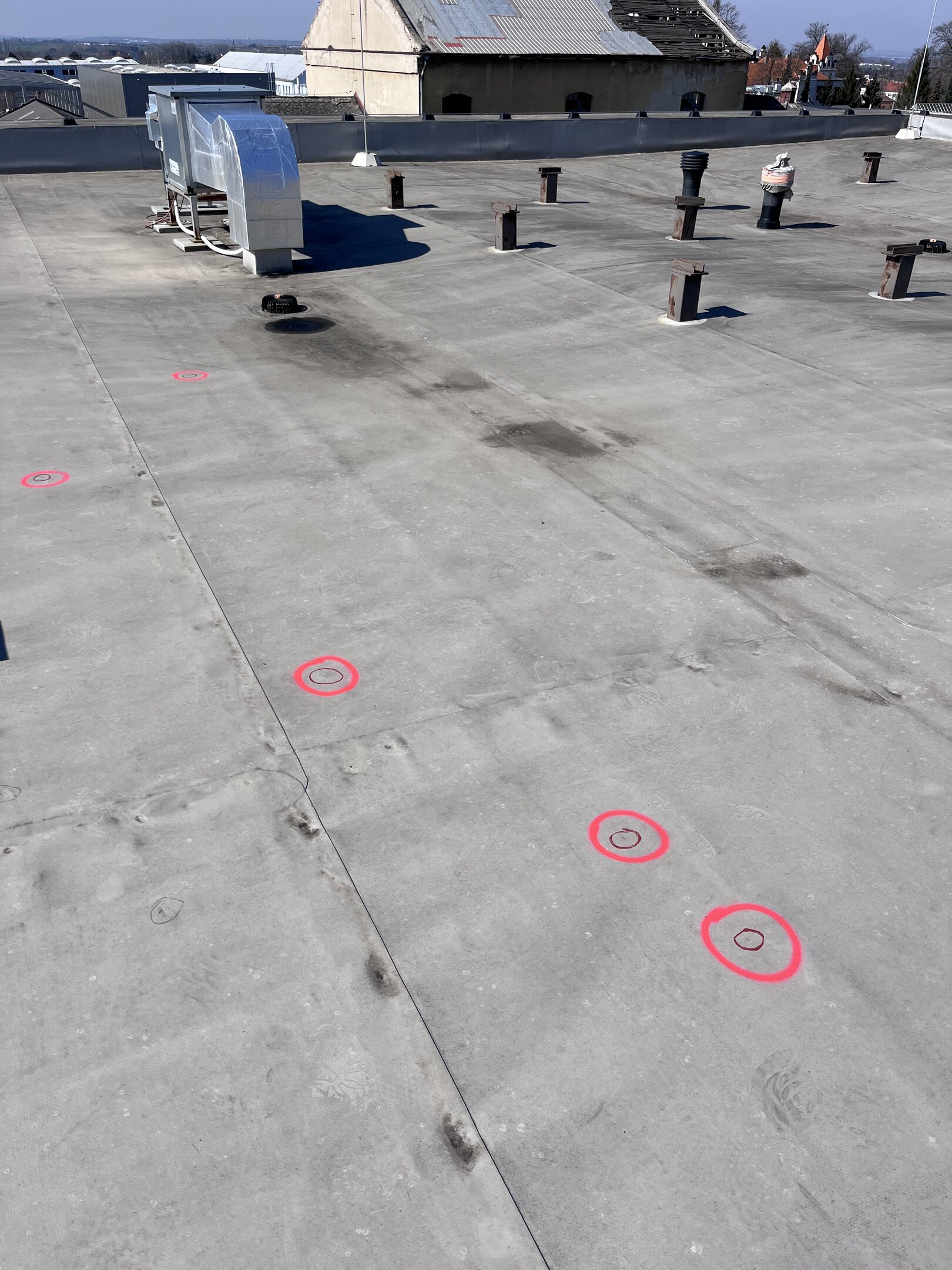 Jiskrová zkouška vodorovné a svislé plochy střešního pláště